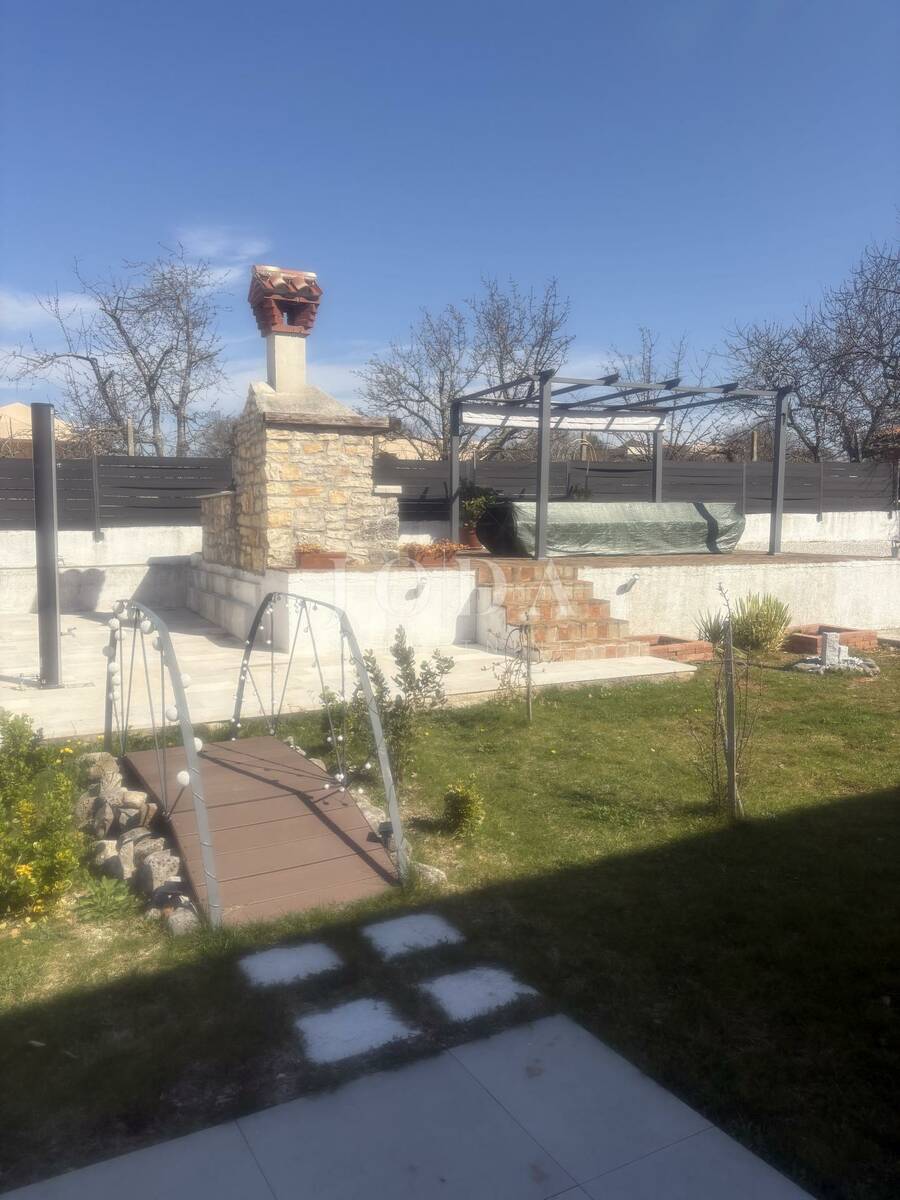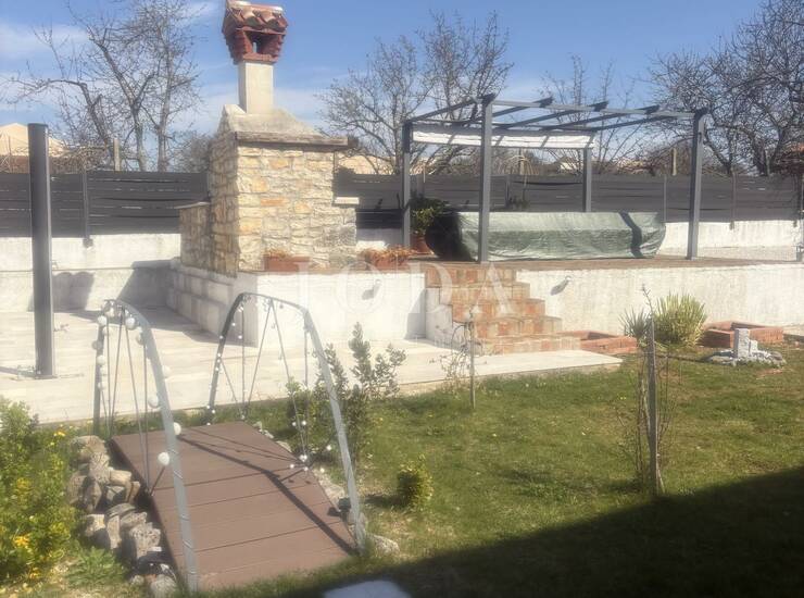 Na prostranoj okućnici nalazi se bazen sa sunčalištem, dodatni objekt, kamin, te dječje igralište, vrtna garnitura, ležaljke i dvije nadstrešnice.