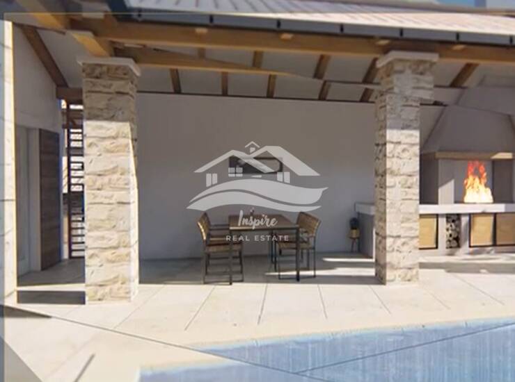 * Prizemlje: Kuhinja s blagovaonicom 32 m2, natkrivena terasa 29 m2, 1 spavaća soba s kupaonicom