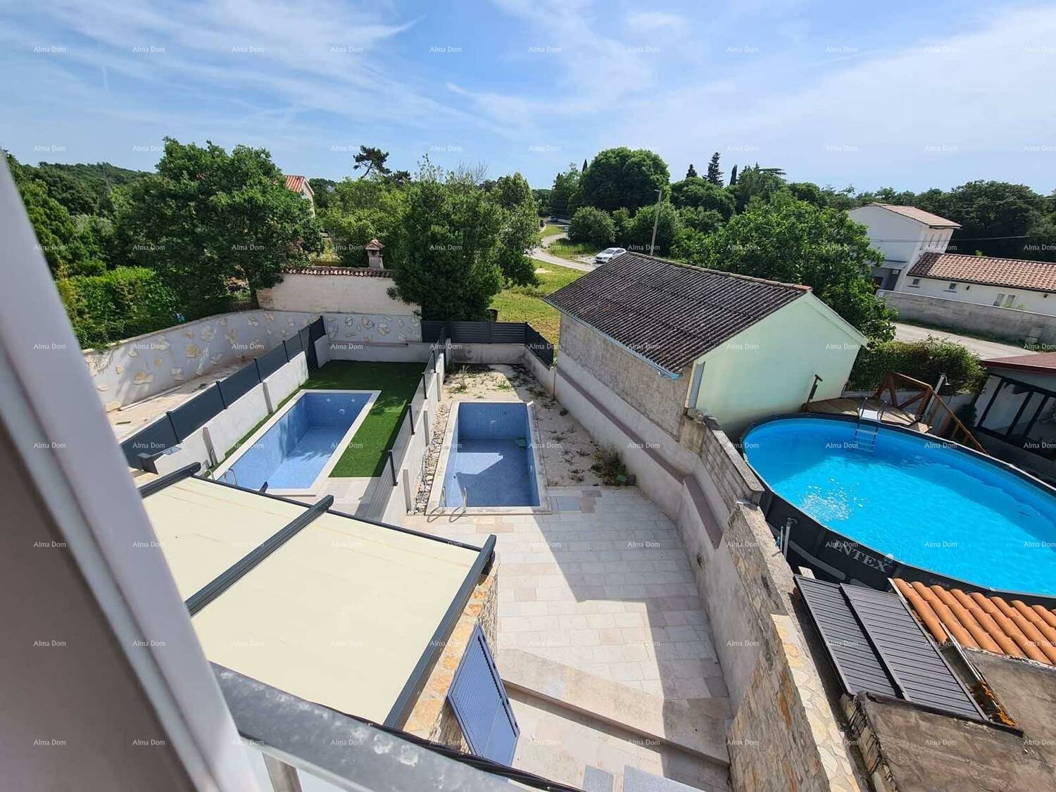 U prednjem dvorištu nalaze se dodatni apartman od 24 m² i konoba od 9 m², što pruža dodatnu vrijednost i fleksibilnost – idealno za goste, iznajmljivanje ili kao hobi prostor. Ukupna površina okućnice iznosi 244 m².