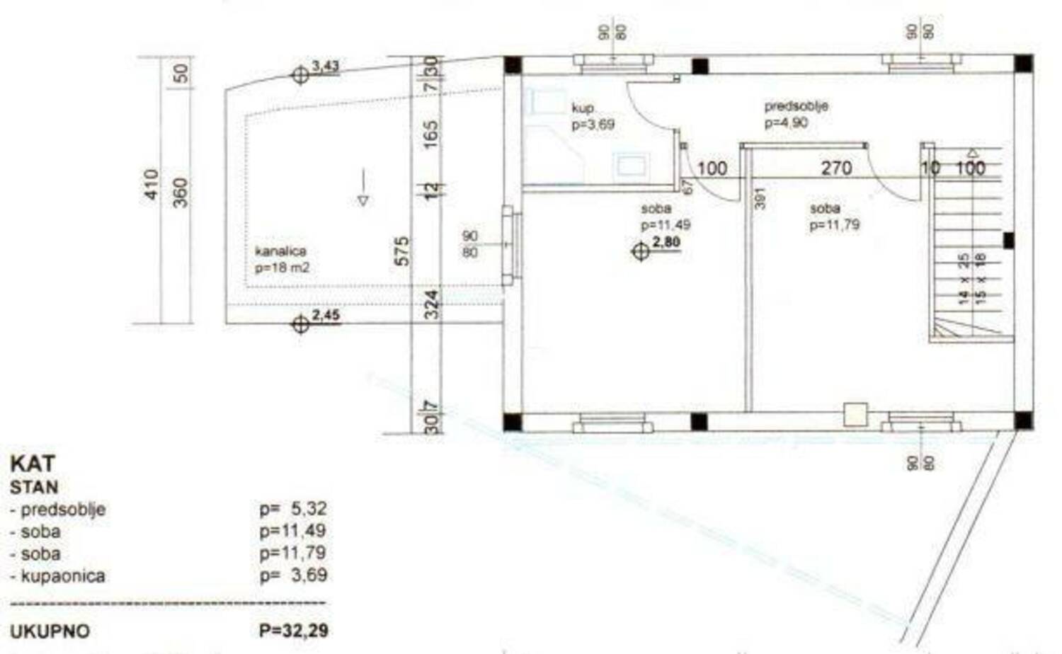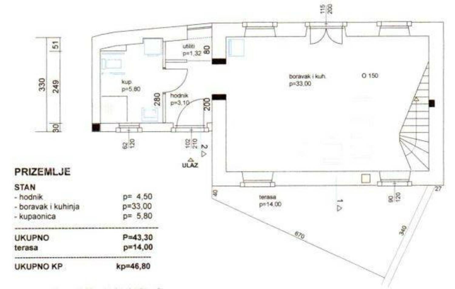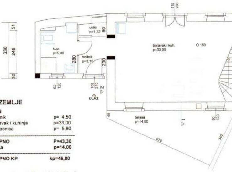 Projekt je smišlen tako da se nadogradi na 60 m2 prostora u prizemlju još jedan kat od 40 m2, a uz kuću je i okućnica od 110 m2 gdje ima mjesta za parkirno mjesto.