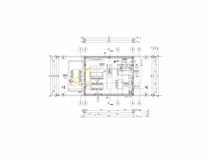 U prizemlju kuće su predviđene sljedeće prostorije: dnevni boravak, blagovaonica i kuhinja kao open space prostor, ostava, toalet i hodnik.