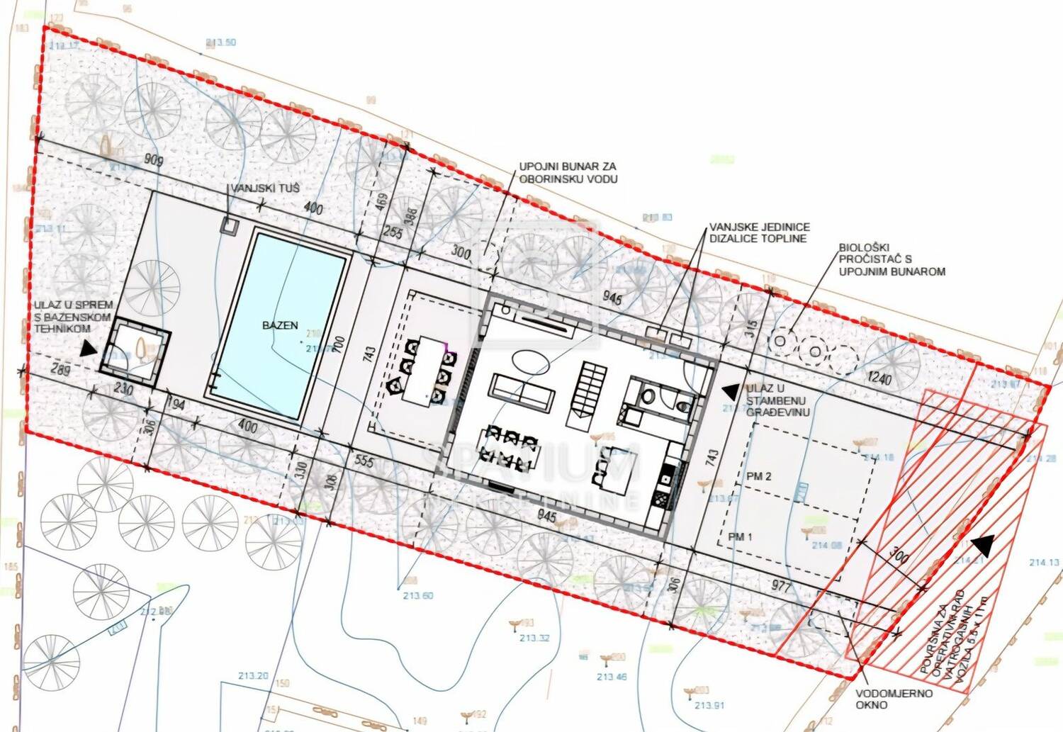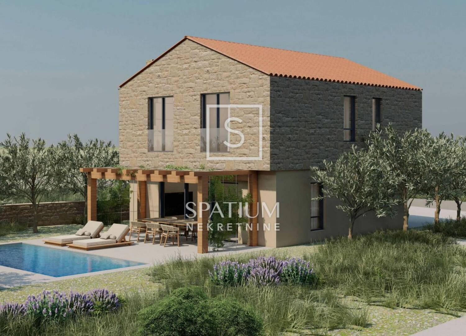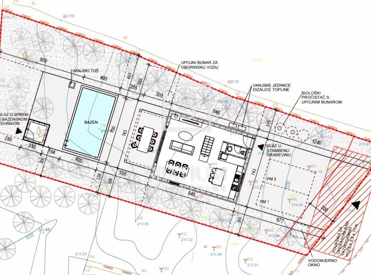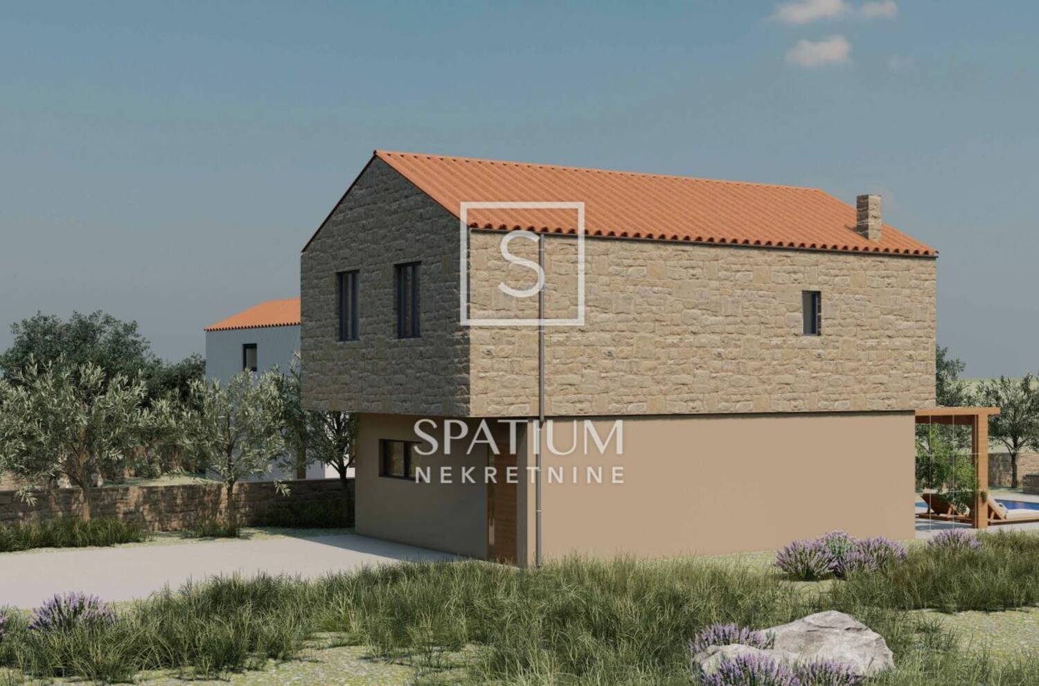 JURŠIĆI, u ponudi je građevinsko zemljište površine 547 m², smješteno na mirnoj lokaciji na samom kraju sela. Parcela je pravilnog oblika, omeđena suhozidima s dvije strane te ima izravan pristup s javnog puta. Prodaje se zajedno s glavnim projektom i pravomoćnom građevinskom dozvolom za izgradnju samostojeće kuće od 120 m² neto površine, raspoređene na prizemlje i kat. Prema projektu, u prizemlju su predviđeni open-space dnevni boravak, kuhinja i blagovaonica, ostava, toalet i hodnik, dok se na katu nalaze tri spavaće sobe, svaka s vlastitom kupaonicom. Projekt uključuje i pomoćne objekte: bazen od 28 m², spremište s bazenskom tehnikom, biološki pročistač te dva parkirna mjesta. Vanjska terasa prostire se na 40 m², a parcela već ima priključke za vodu i struju, nekoliko stabala maslina te pripremljen i očišćen teren za početak gradnje. U cijenu je uključen i prirodni kamen namijenjen za gradnju.
