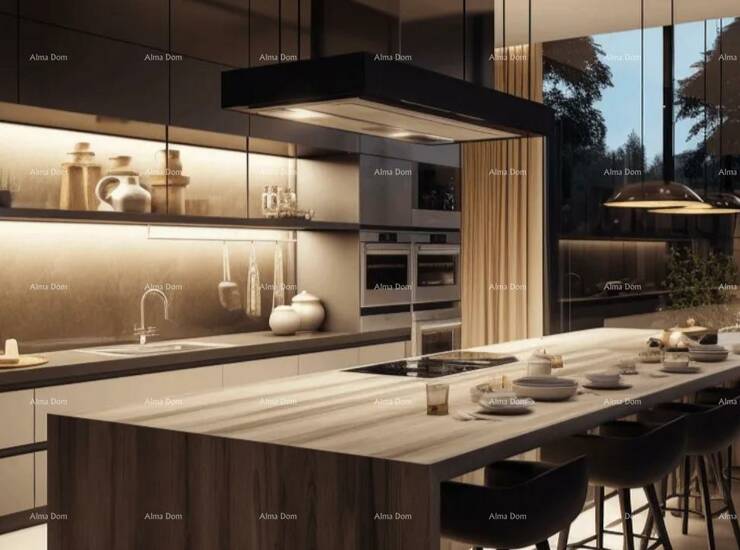 Projekt uključuje vlastitu solarnu elektranu i kišnicu sakupljanu u tradicionalnu cisternu (šternu), pogodnu za navodnjavanje, punjenje bazena i korištenje kao sanitarna voda.