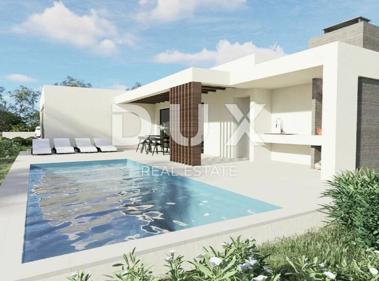 ISTRA, SVETVINČENAT - Zemljište s građevinskom dozvolom za prekrasnu prizemnicu s bazenom
