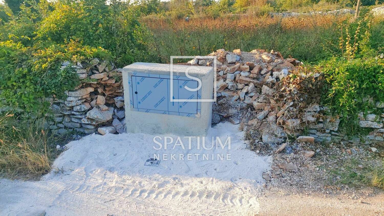 Zemljište je ograđeno suhozidom, u potpunosti je ravno te iznimno povoljne konfiguracije za gradnju. Radi se o kutnoj parceli od 760 m²