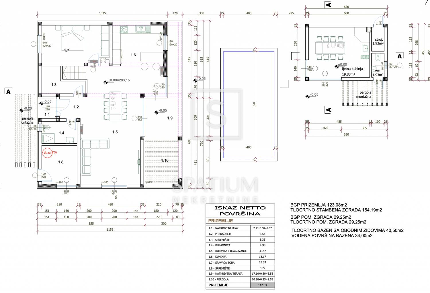 PRIZEMLJE UKUPNO: 112.33 m2