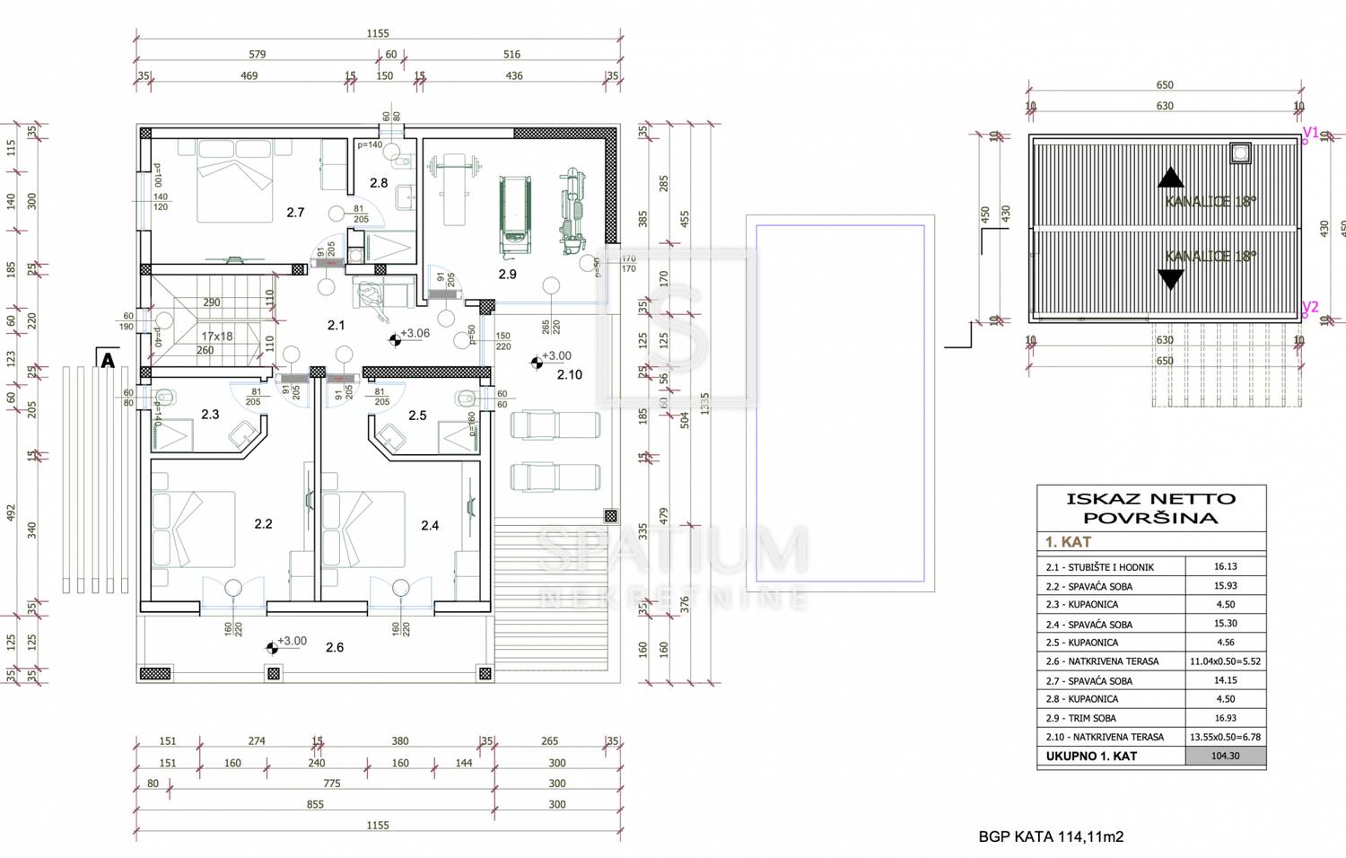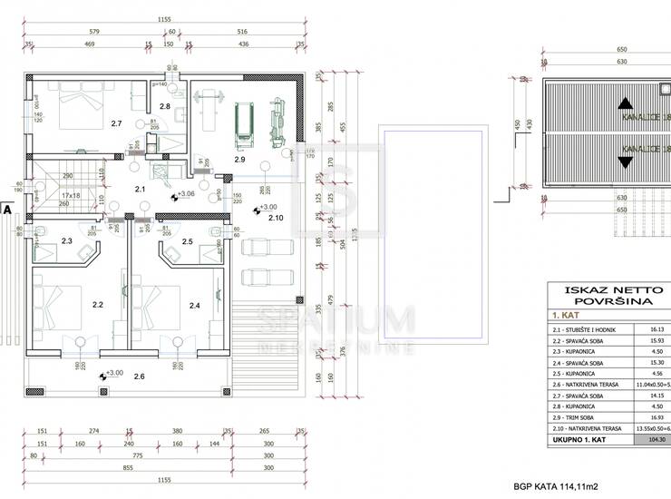 KAT UKUPNO: 104.30 m2