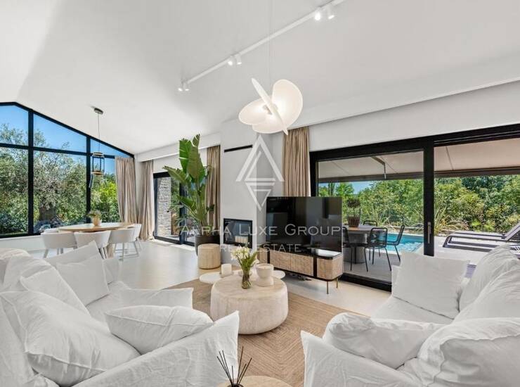 Ukupne stambene površine 137 m², uz impresivan grijani bazen od 44 m² i uređenu okućnicu od 500 m², vila je osmišljena kako bi pružila maksimalnu udobnost i funkcionalnost. Poseban dojam ostavljaju visoki stropovi i velike staklene stijene koje unose obilje prirodnog svjetla te otvaraju pogled prema stoljetnoj maslini, stvarajući osjećaj povezanosti s prirodom.