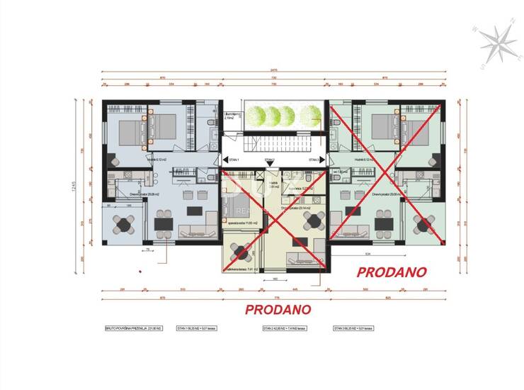 Predstavljamo vam ekskluzivnu priliku za kupnju stana u moderno dizajniranom stambenom objektu koji se gradi prema najvišim standardima kvalitete i energetske učinkovitosti. Stan je smješten u prizemlju novogradnje i pruža kombinaciju komfora, privatnosti i modernog dizajna. Ukupna površina stana iznosi 66,09 m², uz dodatnu natkrivenu terasu od 8,99 m² i privatni vrt od cca 120 m² opremljen sustavom automatskog navodnjavanja.