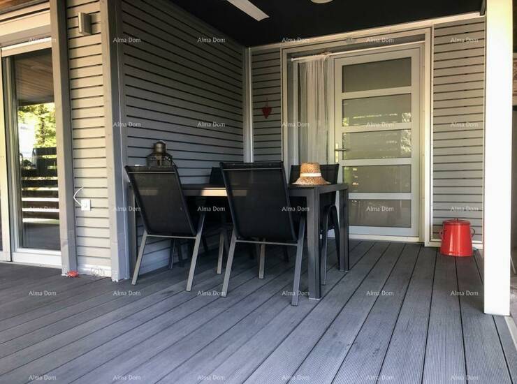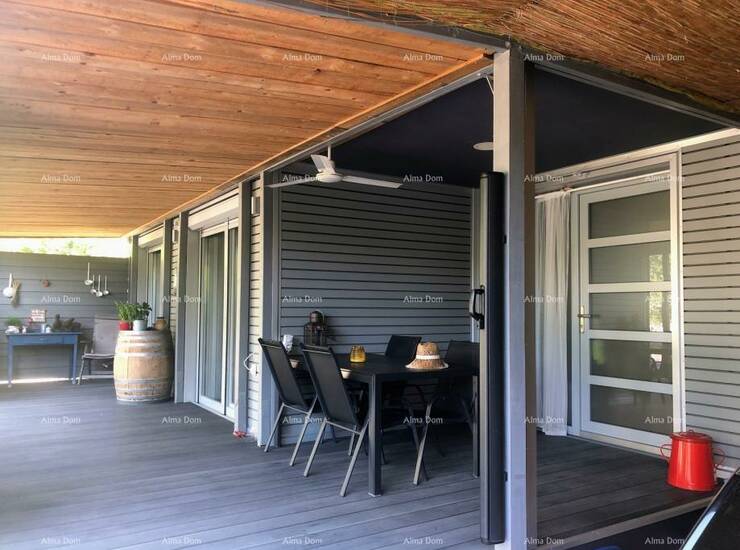 Kuća se sastoji od dnevnog boravka sa kuhinjom i blagavaonom, spavaće sobe, kupaone i velike verande. Kuća ima jedno natkriveno mjesto i 6 nenatkrivenih parkirnih mjesta.