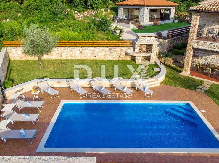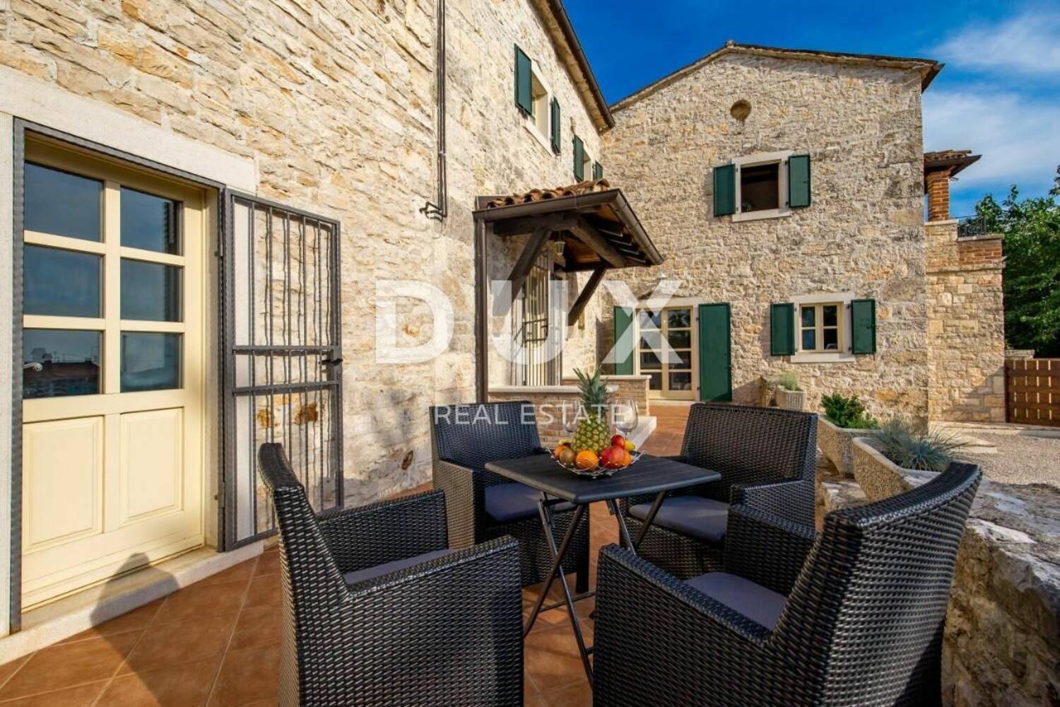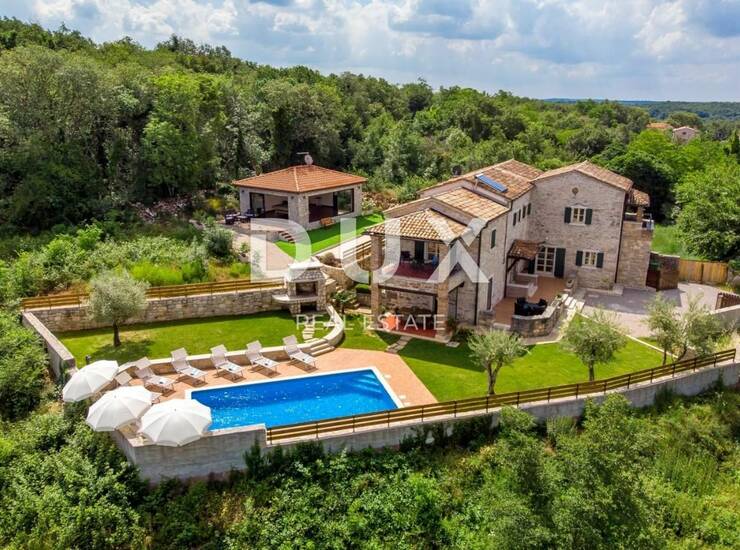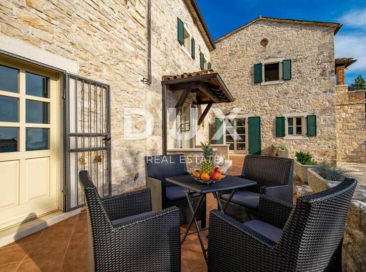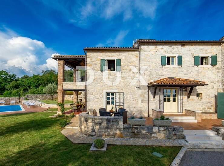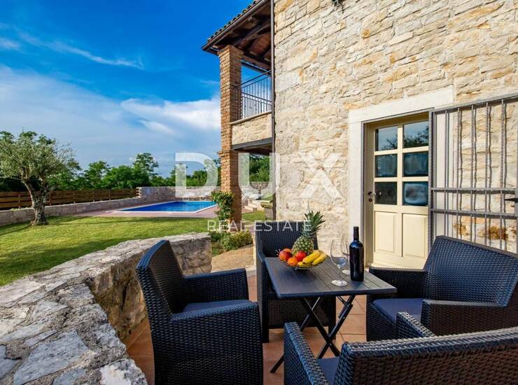 Prodaje se tipična istarska kamena kuća stambene površine 300m2 na potpuno uređenoj i ograđenoj okućnici od 700 m2 na kojoj se nalazi i bazen površine 32 m2 sa sunčalištem. Kuća ima privatan parking i zasebnu klimatiziranu kućicu za druženja sa stolom za biljar, stolni tenis, TV- om i sjedećom garniturom.