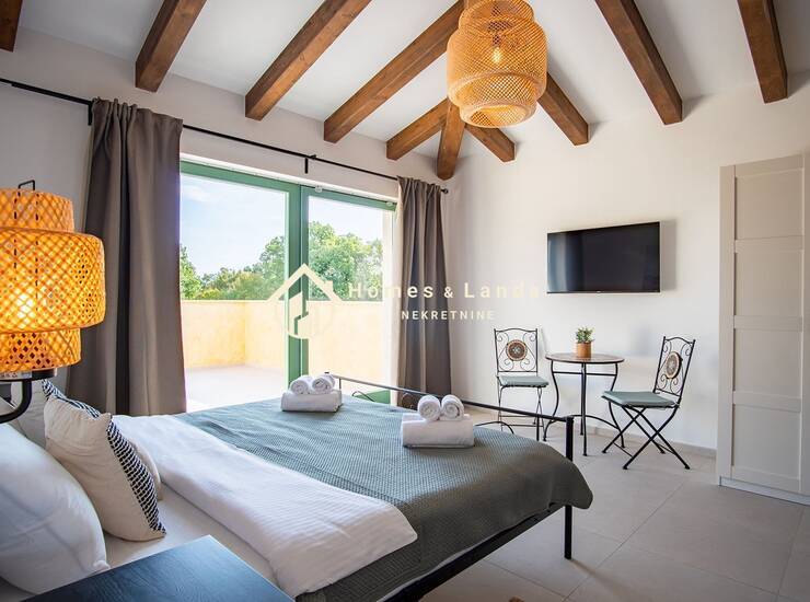 Tradicijski Istarski stil: Ova čarobna kuća izgrađena je u prepoznatljivom istarskom stilu, kombinirajući kamen i drvo za autentičan izgled.