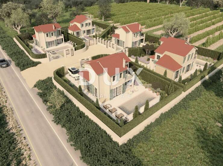 Ponosno predstavljamo projekt novogradnje smještene nadomak pitoresknog gradića Tinjan. Riječ je o projektu izgradnje privatnog kompleksa tipskih vila, dizajniranih po uzoru na talijanske vile s daškom istarskog stila gradnje. Vile su stopljene u okruženju s predivnom prirodom, blagim brdoviti krajolikom i uređenim obradivim poljima.
