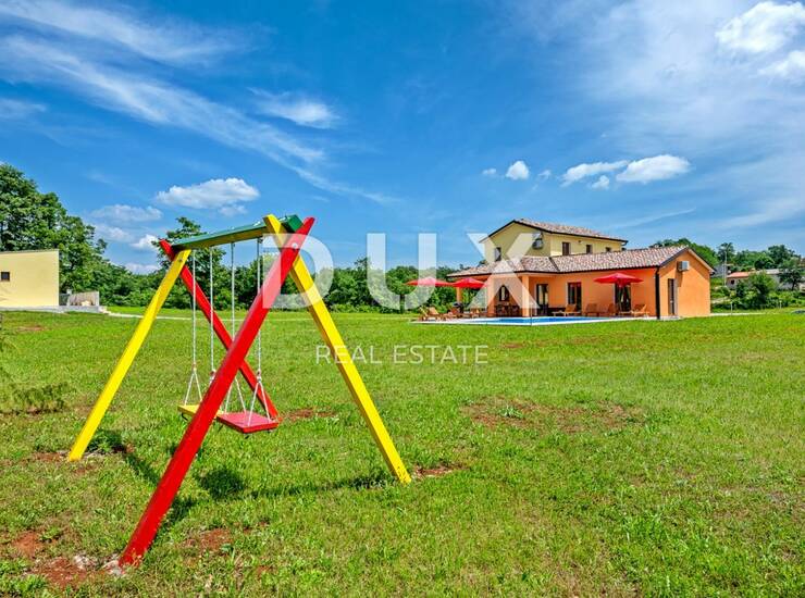 Uz sve to, na imanju se nalazi još jedan pripadajući objekt unutar kojega imamo još jedan dvosobni apartman i garažu, bazen sa sunčalištem, roštilj i dječje igralište.