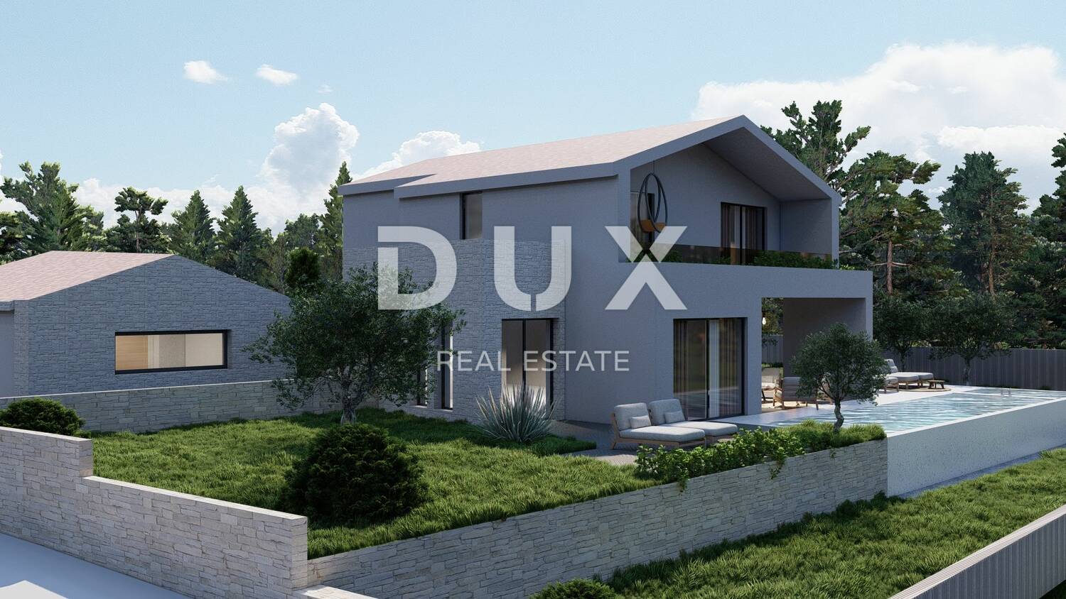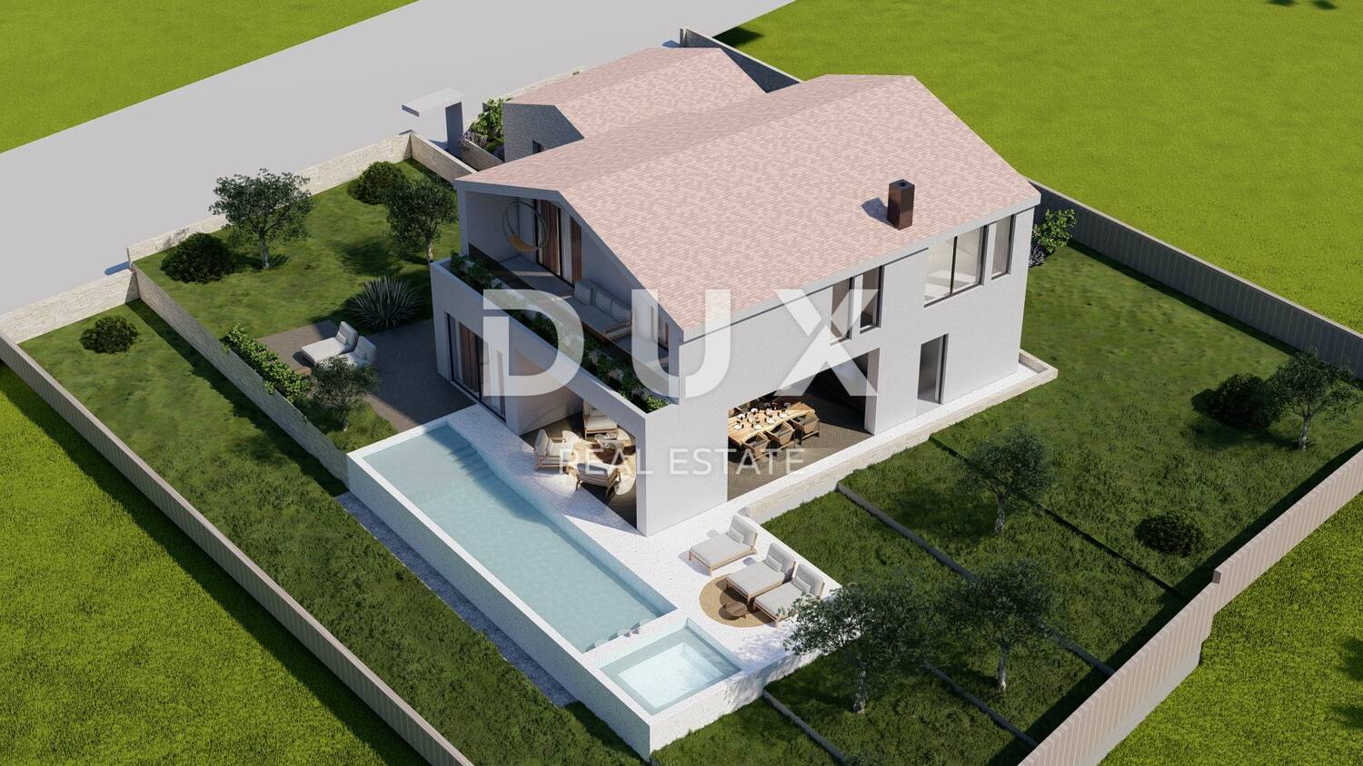 ISTRA, TINJAN - Zemljište s građevinskom dozvolom za obiteljsku kuću s garažom i vanjskim bazenom