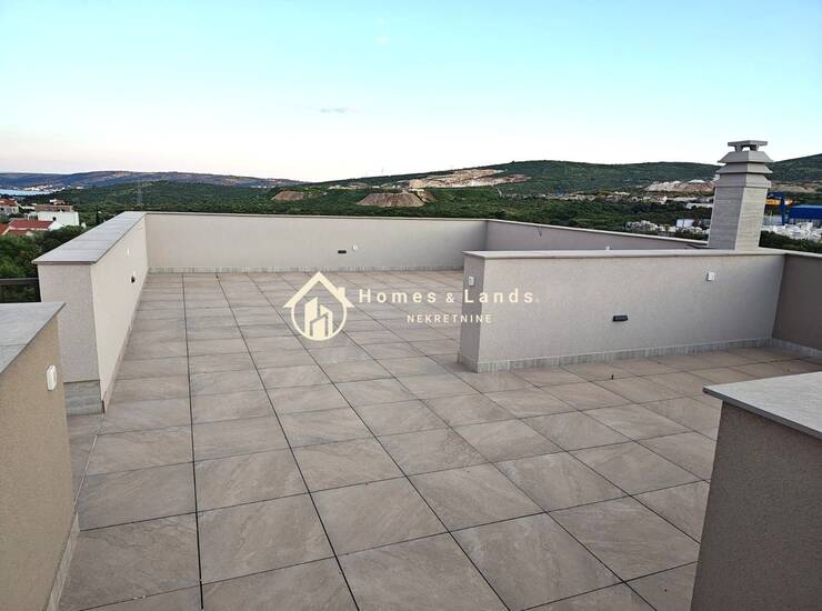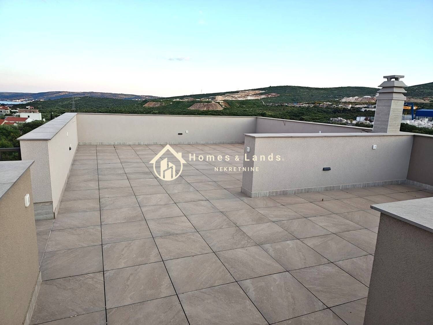 U srcu Dalmacije, u mirnoj i atraktivnoj okolici grada Trogira, smještena je ova moderna luksuzna vila, idealna za obiteljski život, turističku investiciju ili siguran povratak u domovinu.