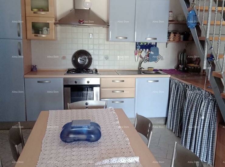 U prizemlju se nalazi ulazni hodnik, kuhinja s blagavaonicom, 2 spavaće sobe, kupaonica, te velika natkrivena terasa. Unutarnje stepenice vode na kat kuće gdje se nalazi spavaća soba, kupaonica te manji hodnik.