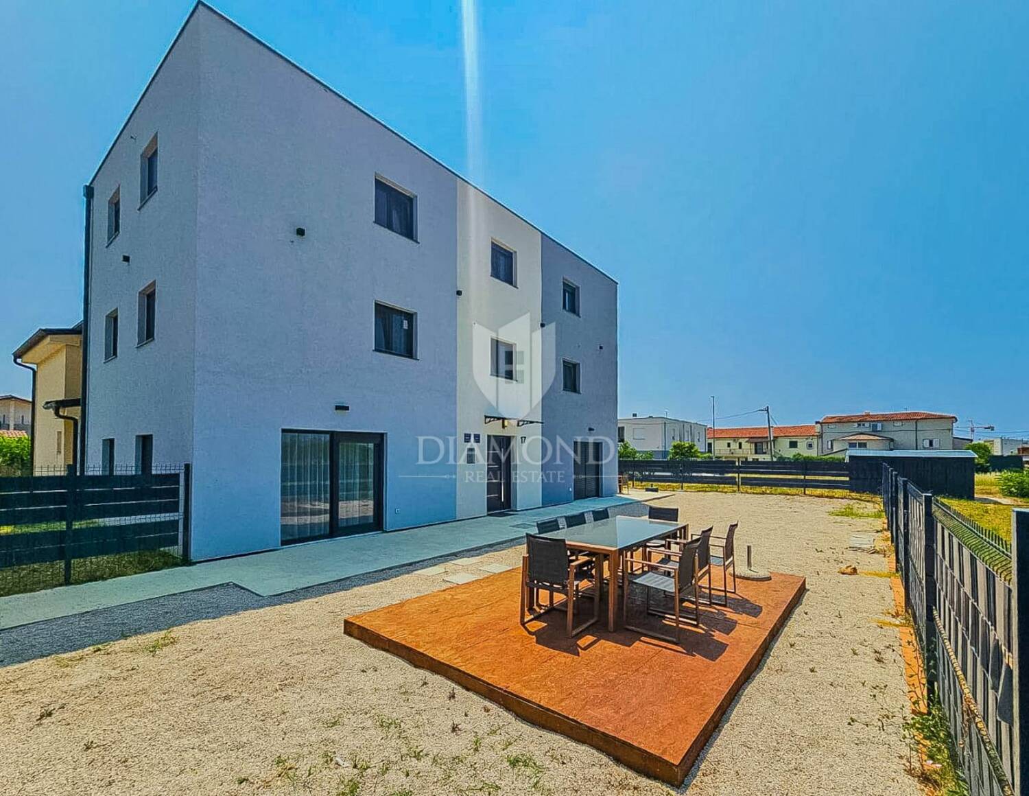 Lokacija kuća je izuzetna – svega 1 kilometar udaljena od centra Umaga i njegovih atraktivnih, uređenih plaža. U neposrednoj blizini nalaze se svi sadržaji potrebni za ugodan svakodnevni život: trgovine, restorani, kafići, parkovi, dječja igrališta, škola, vrtić, šetnice i biciklističke staze.