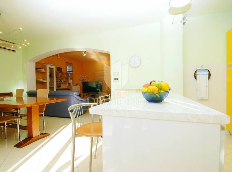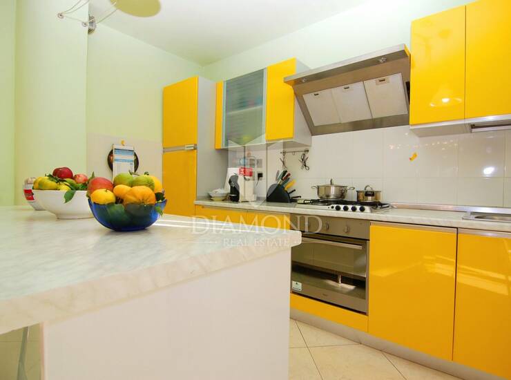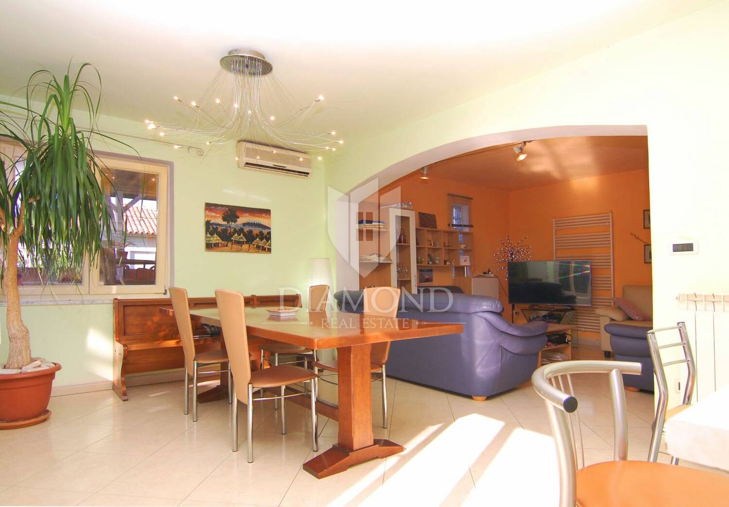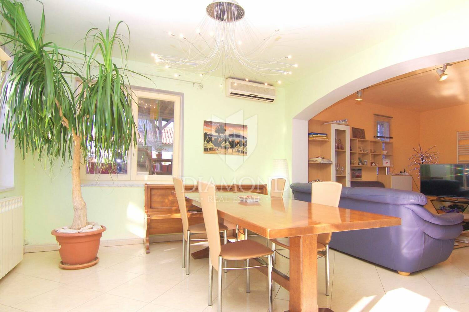 U najekskluzivnijem dijelu Umaga na samo 100 m od mora prodaje se ova samostojeća kuća. Nalazi se na lijepo uređenoj zelenoj okućnici od 488 m2 i sastoji se od dva stana. U visokom prizemlju se nalazi prostrani stan sa velikom dnevnom sobom, kuhinjom sa otokom i blagovaonskim stolom za 8 osoba, te velike spavaće sobe i kupatila.