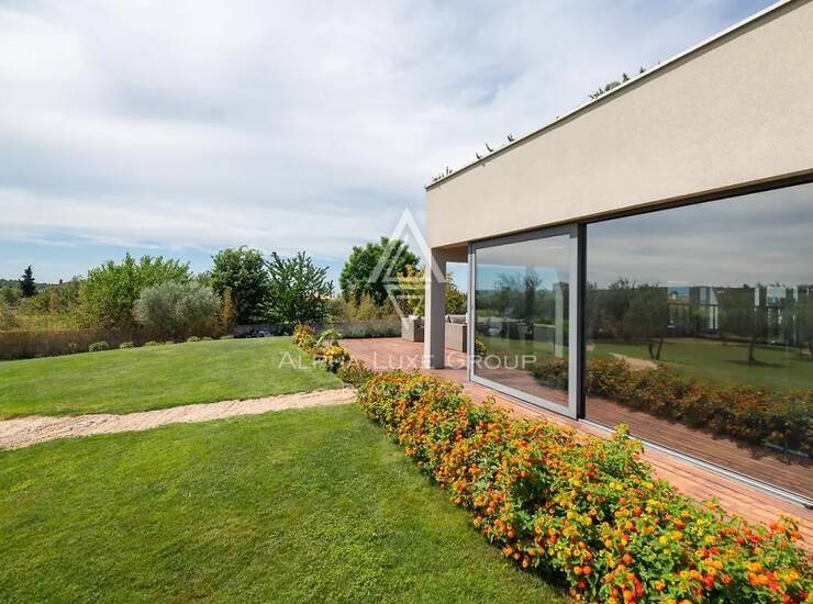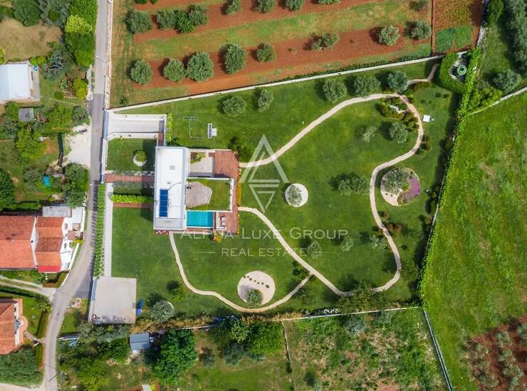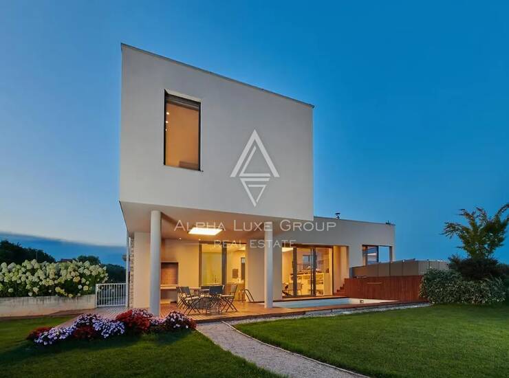 Izgrađena od visokokvalitetnih materijala i opremljena naprednom kućnom tehnologijom, vila uključuje podno grijanje, centralni pametni sustav za rasvjetu i klimatizaciju, vrhunske uređaje, namještaj po mjeri, sustav za pročišćavanje vode te privatno kućno kino. Tri panoramske terase okružuju kuću, pružajući idealan prostor za opuštanje, objedovanje ili uživanje u mirnim pogledima na maslinike i Jadransko more.