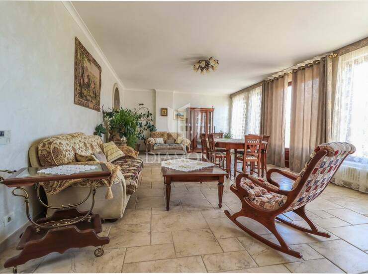 Smještena na prostranoj parceli od 1191 m², ova kuća površine 250 m² odiše elegancijom, udobnošću i mediteranskim šarmom. Proteže se na dvije etaže te nudi dva potpuno odvojena i samostalna stana, što omogućuje udoban obiteljski život ili odličnu priliku za investiciju. Na katu se nalazi svijetao i prostran stan sa zasebnim ulazom, koji obuhvaća dvije spavaće sobe, svaka sa svojom privatnom kupaonicom, moderno opremljenu kuhinju te udoban dnevni boravak s izlazom na veliku terasu. S terase se pruža očaravajući panoramski pogled na more, idealan za uživanje u zalascima sunca i opuštanje u miru i tišini. U prizemlju kuće smješten je još jedan zaseban stan s vlastitim ulazom, koji se sastoji od dvije spavaće sobe, kupaonice, dodatnog toaleta, kuhinje i prostranog dnevnog boravka s izlazom na terasu i uređen vrt. U dvorištu se nalazi natkrivena ljetna kuhinja s kaminom, savršena za druženja i ljetne večeri na otvorenom, natkriveni parking te dva podruma koji pružaju dodatni prostor za pohranu.