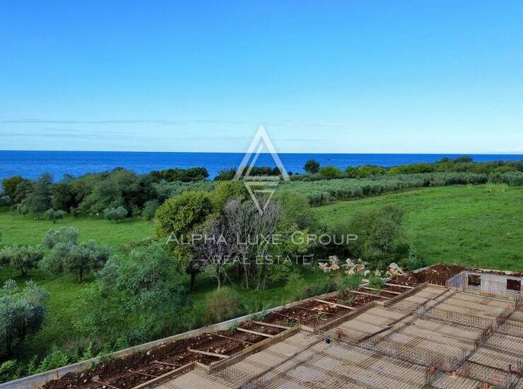 In the prestigious coastal area of Savudrija near Umag, this exceptional new development offers a rare chance to acquire a contemporary residence just steps from the sea. Positioned virtually on the waterfront, the project includes five luxurious terraced homes featuring uninterrupted panoramic sea views and a peaceful Mediterranean atmosphere—perfect for year-round living, holiday use, or high-end investment.