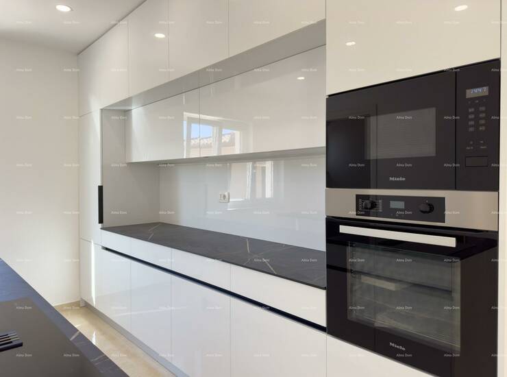 Podno grijanje u svim prostorijama, klima uređaj u svim prostorijama, Miele kuhinjski aparati te perilice i sušilice veša, grijani bazen, ljetnja kuhinja sa toaletom, tehnička soba te četiri parkirna mjesta (48m2).