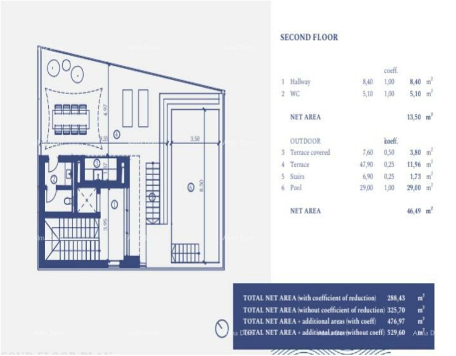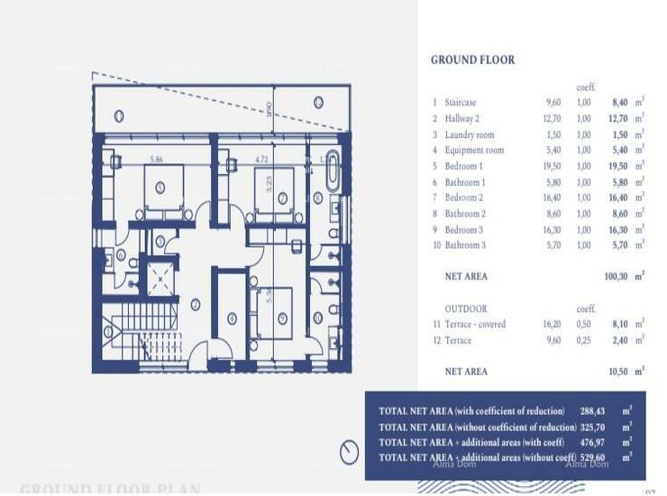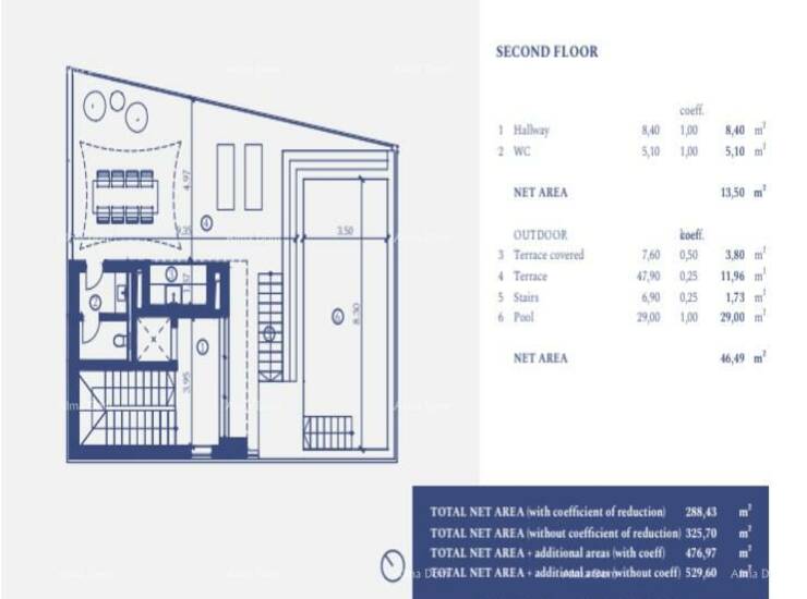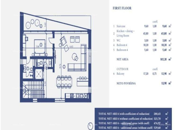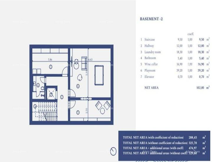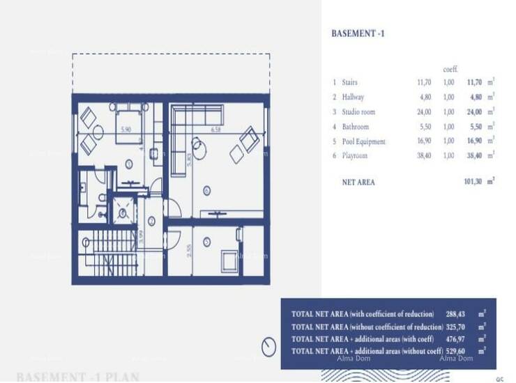 Neto površina vile od 500,59 m2 uključuje,