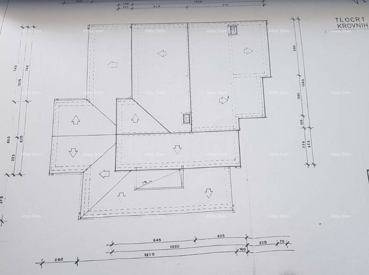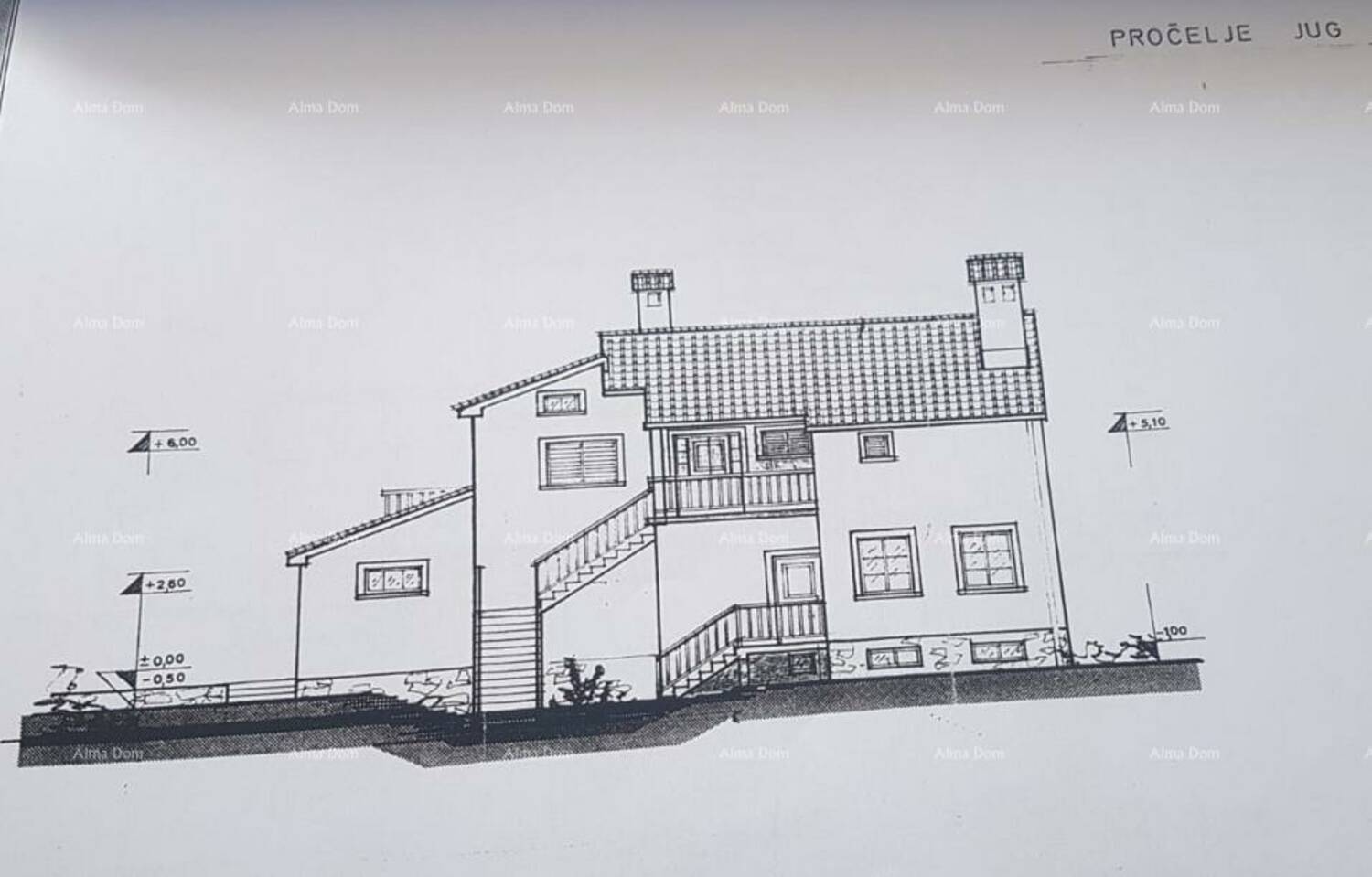 Na kat se ide vanjskim stepeništima. Na 1. katu se nalazi kuhinja s blagovaonicom, dnevni boravak, 3 spavaće sobe i 2 kupaonice, soba.