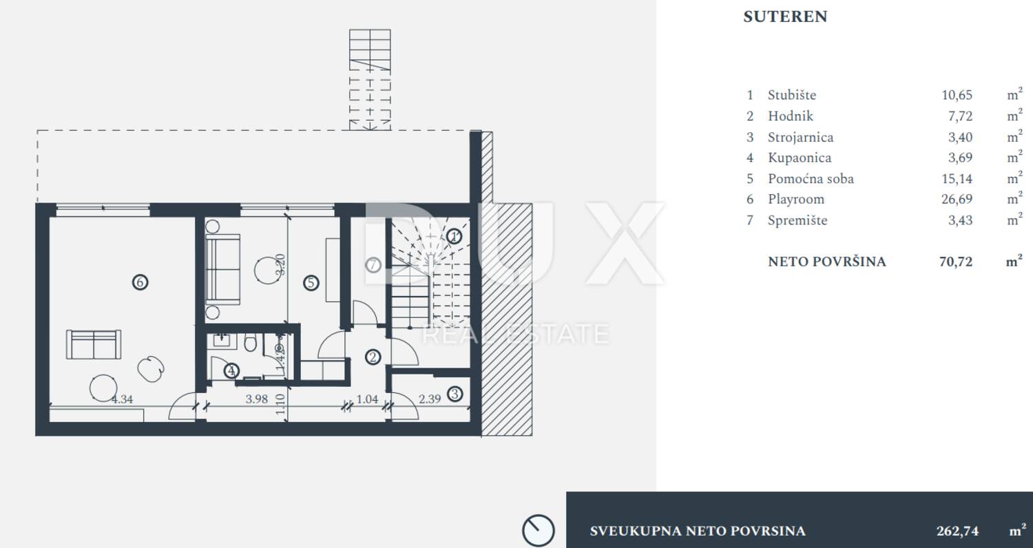 Nekretnina se prostire na tri etaže – suteren, prizemlje i prvi kat, a potpuno je opremljena i spremna za useljenje.