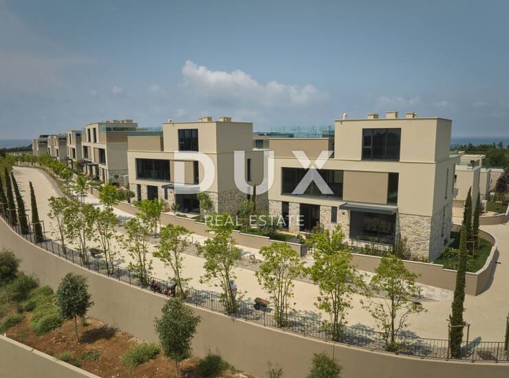 Prodaje se moderna vila s četiri spavaće sobe, smještena unutar prestižnog resorta, svega nekoliko stotina metara od plaže. Vila se prostire na pet etaža koje su međusobno povezane liftom, a odlikuje se vrhunskom kvalitetom gradnje i pomno osmišljenim rasporedom prostorija.