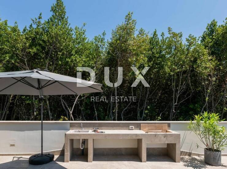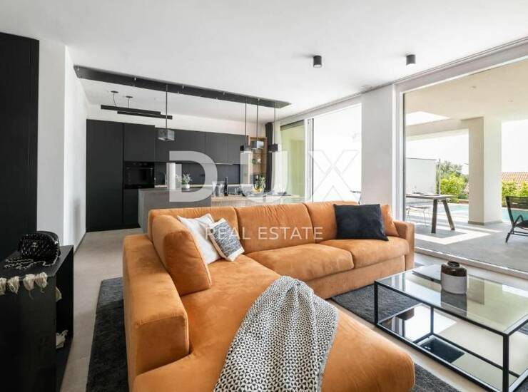 Prodaje se moderna vila s bazenom s pogledom na veliki nasad maslina i more. Svuda okolo se nalaze šume i polja, što garantira mir, a za one koji vole aktivan odmor, poziv na vožnju biciklom i šetnju.