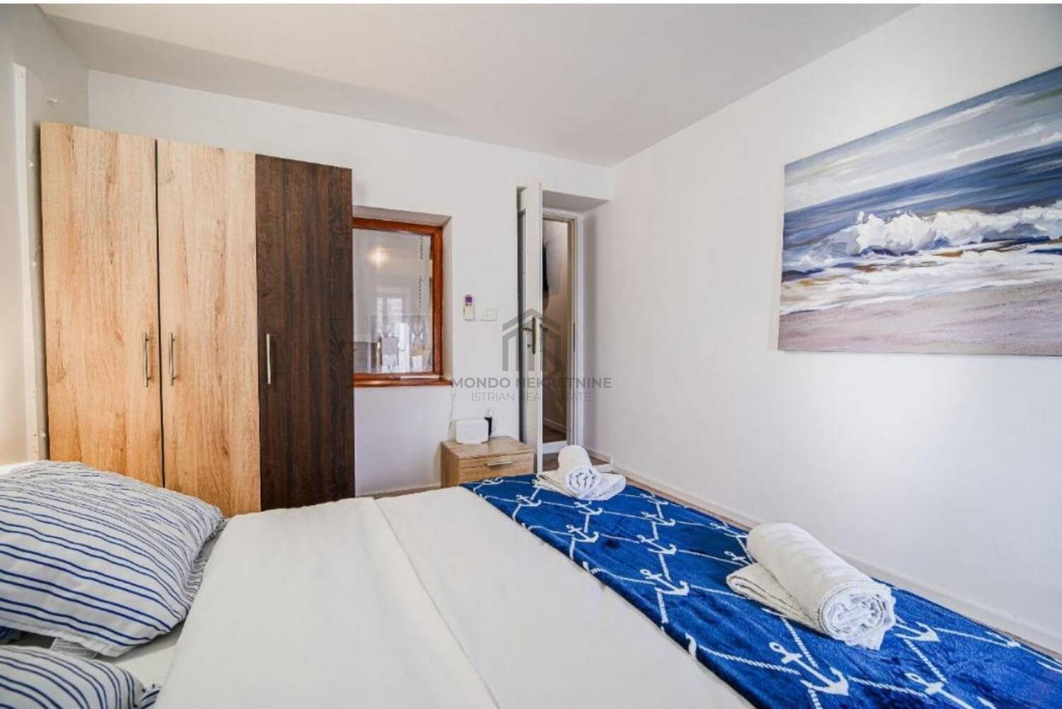Na prodaju je potpuno opremljen stan površine 30 m2, smješten u samom centru Umaga, u prvom redu do mora.