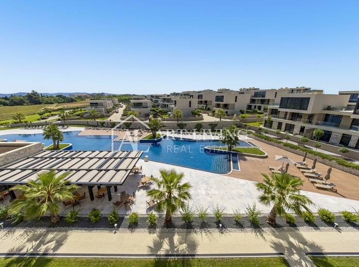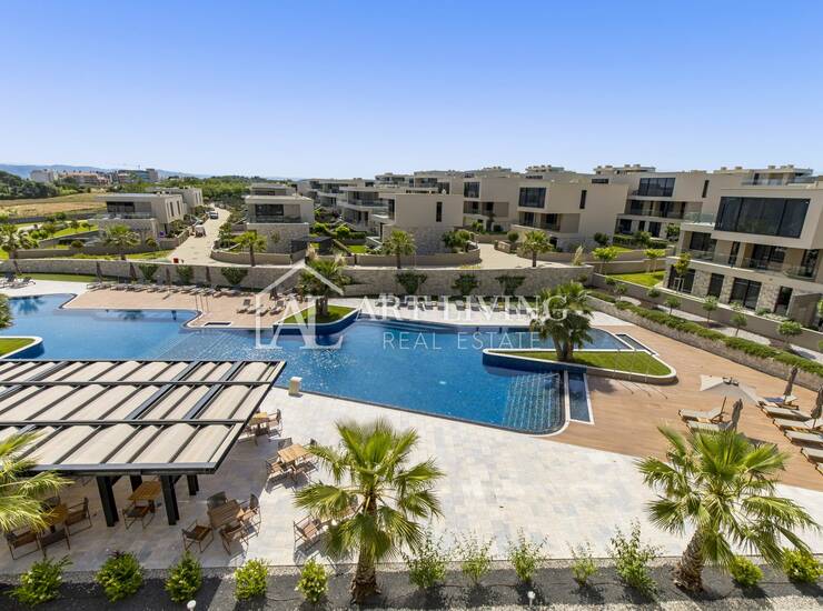 U sklopu resorta u Aparthotelu opremljenom sa svim popratnim sadržajima te najvećim infinity bazenom u Europi, nalazi se ovaj luksuzan apartman na 3. katu ukupne površine 64 m2.