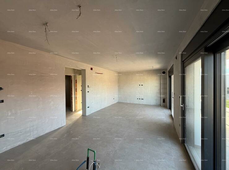 Stan se nalazi na 1. katu stambene zgrade i sastoji se od: ulaznog hodnika, open space kuhinje, blagovaone i dnevnog boravka s izlazom na natkriveni balkon, 2 spavaće sobe i 2 kupaonice.
