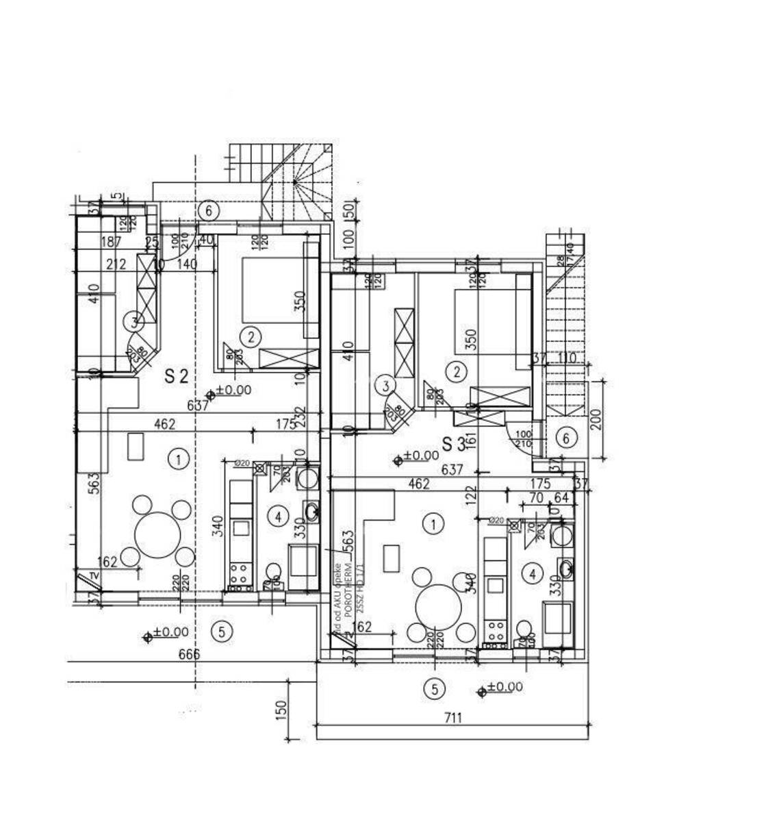 Površina stana S2: 58,61 m², natkrivene terase: 13,32 m², natkrivene verande: 2,75 m², sveukupno sa terasama 74,68 m2. Stanu pripada vrt ispred terase 27 m².