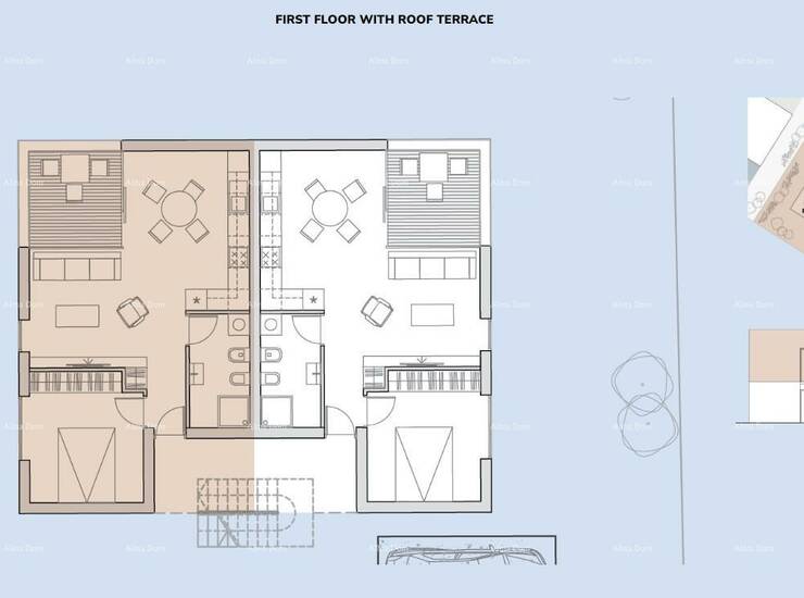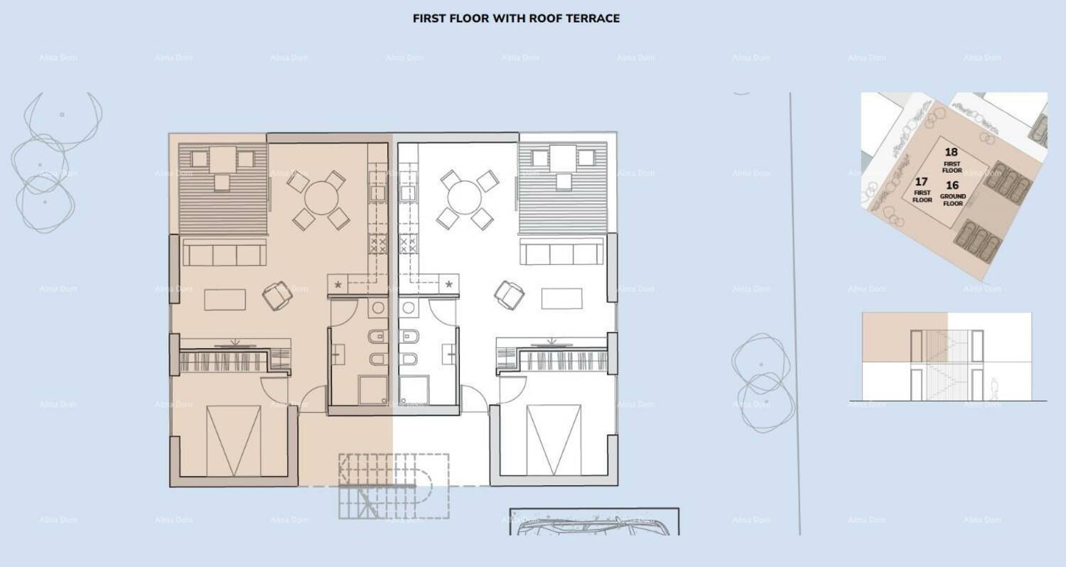 Stan A17, nalazi se na 1.katu zgrade sa dvije etaže. Na svakoj etaži jedan stan.