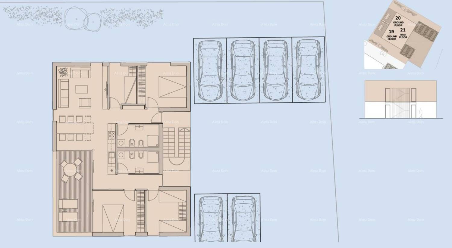 Stan A21, nalazi se na 1.katu zgrade sa dvije etaže. na svakoj etaži jedan stan.