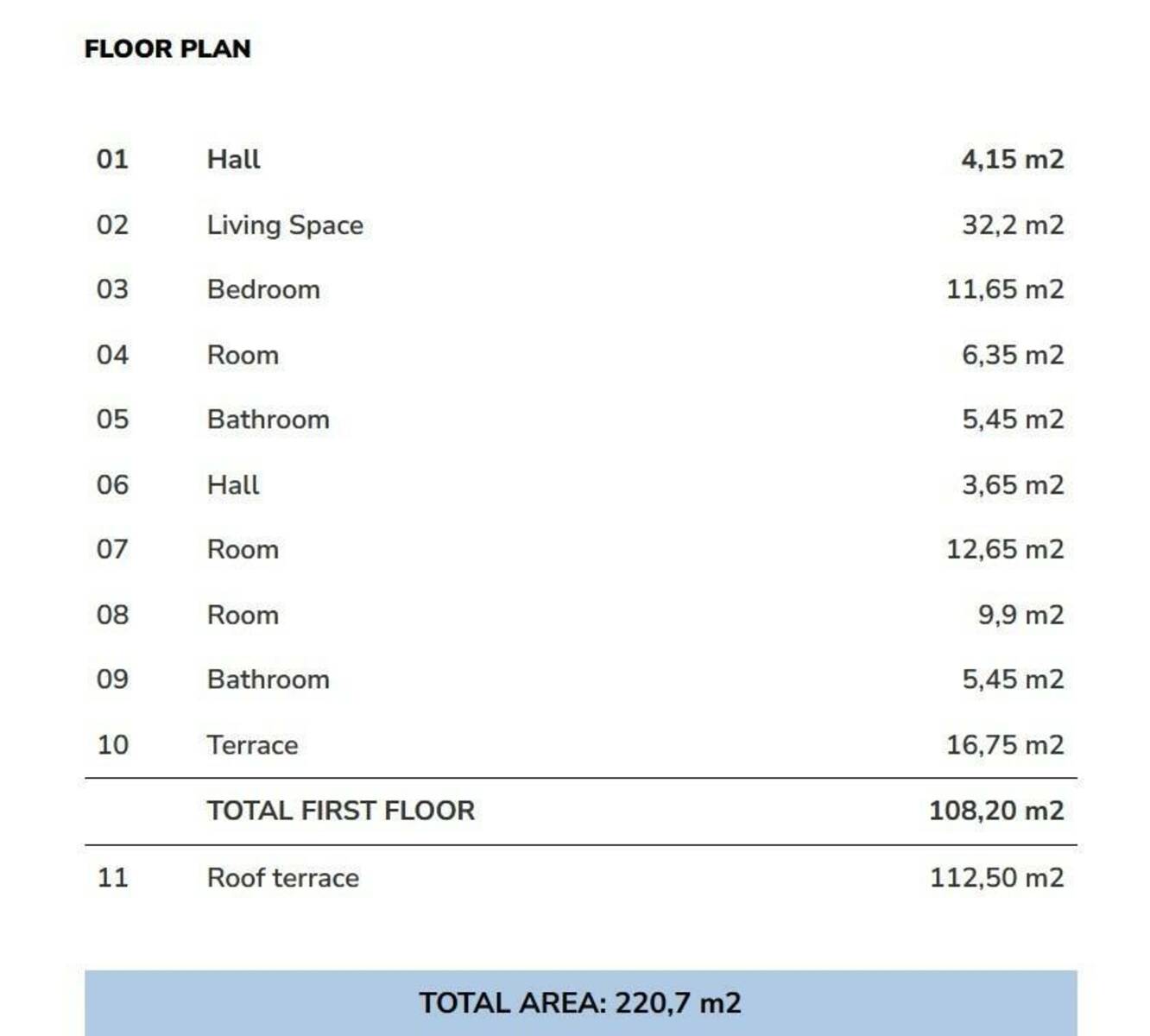 Površina stana bez krovne terase iznosi 108,20 m2.