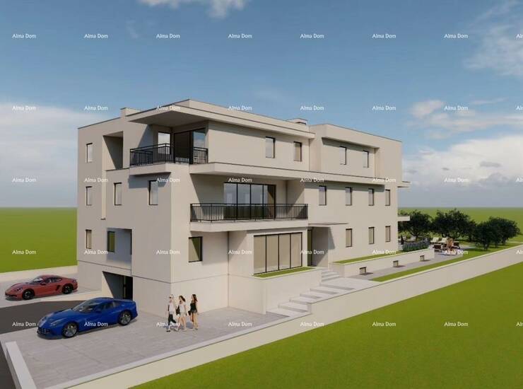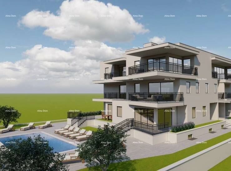 Stan se nalazi u prizemlju zgrade suvremenog dizajna. Kompleks se sastoji od ukupno 12 stanova te uključuje podzemnu garažu s vlastitim parkirnim mjestima. Dodatnu vrijednost ovoj nekretnini daje grijani bazen dimenzija 6 x 12 m smješten ispred zgrade.