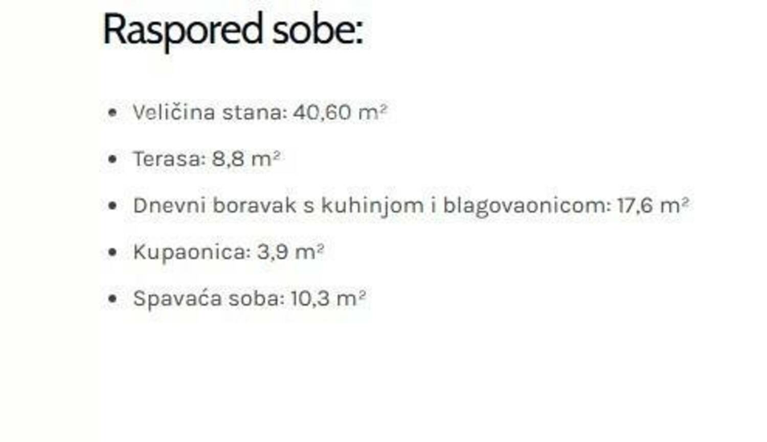 Stan S30, ukupne površine 40,60 m², nalazi se na 1.katu zgrade i sastoji se od: