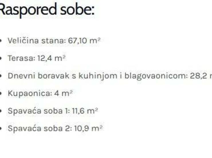 Stan S24, ukupne površine 67,10 m², nalazi se u prizemlju zgrade i sastoji se od: