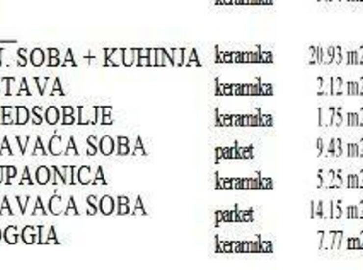 Stan, 61.4 m2, nalazi se na 1. katu zgrade od 3 etaže i sastoji se od: ulaznog hodnika, dnevnog boravka sa kuhinjom i blagavaonom, 2 spavaće sobe, kupaone, spremišta i lijepe terase.