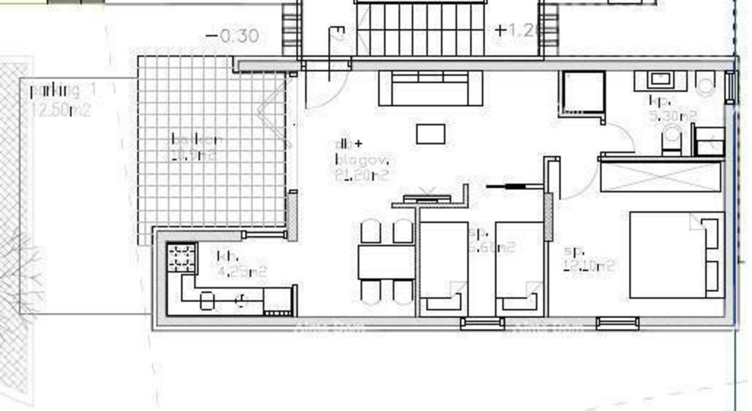 - Natkrivena terasa: 10,90 m² (obračun 50% = 5,45 m²)