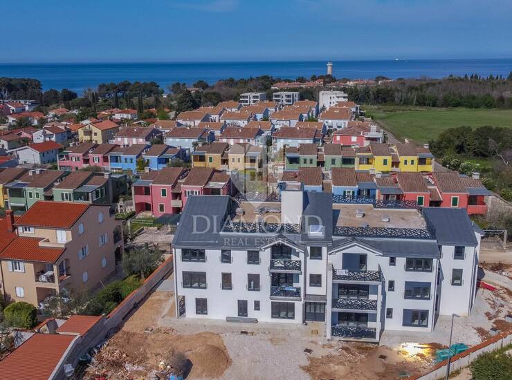 U blizini najpoznatije znamenitosti ovog dijela Istre- Savudrijskog svjetionika očekuje Vas novoizgrađena zgrada sa ukupno 14 stanova. Zgrada je opremljena liftom te svakom stanu pripada spremište u podrumu i jedno vanjsko parkirno mjesto. Ukupna površina stana iznosi 64 m2 te se sastoji od predsoblja, dvije udobne spavaće sobe, moderne kupaonice, praktičnog spremišta, prostranog dnevnog boravka i kuhinje s blagovaonicom. Iz dnevnog boravka se izlazi u vlastiti ograđeni vrt od 34 m2.