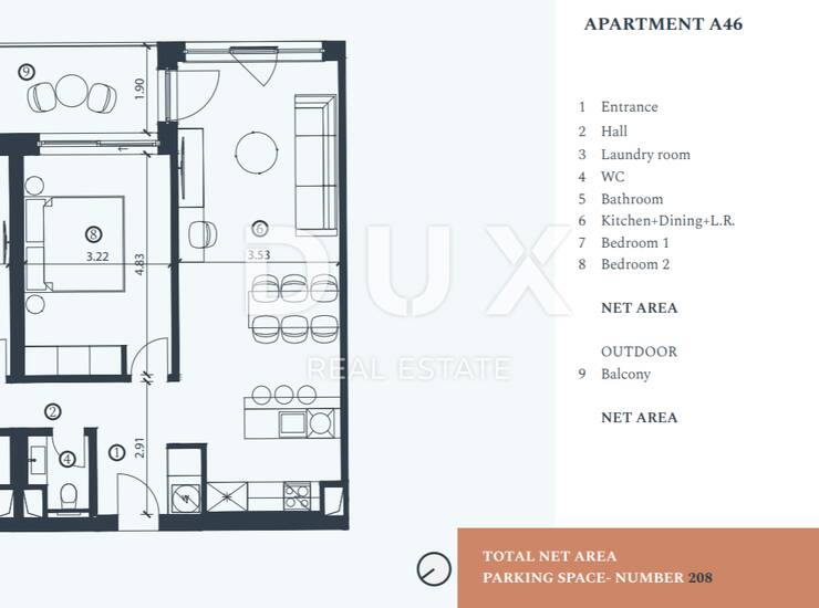 Kvadrature:92,00m2=80,80 unutarnji prostor+11,20 balkon