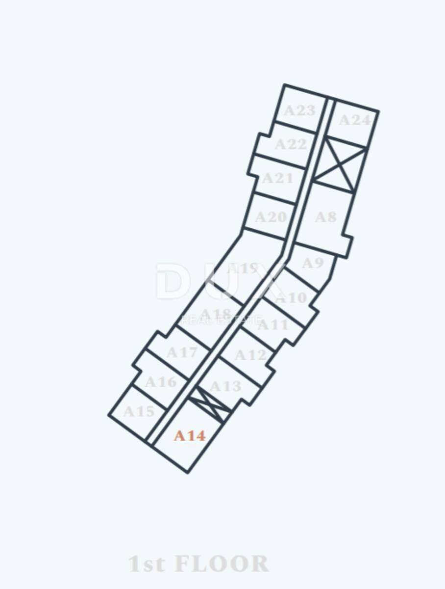 Prodaje se prostrani moderno opremljen apartman smješten u mirnom okruženju, na atraktivnoj lokaciji u blizini mora i na pješačkoj udaljenosti od plaža. Stan se sastoji od velike spavaće sobe, jednom kupaonicom, te prostranim otvorenim prostorom koji obuhvaća dnevni boravak, blagovaonicu i kuhinju. Dnevni boravak i spavaća soba povezani su velikim balkonom koji ima pogled na more. Apartmanu pripada 2 parkirno mjesto.