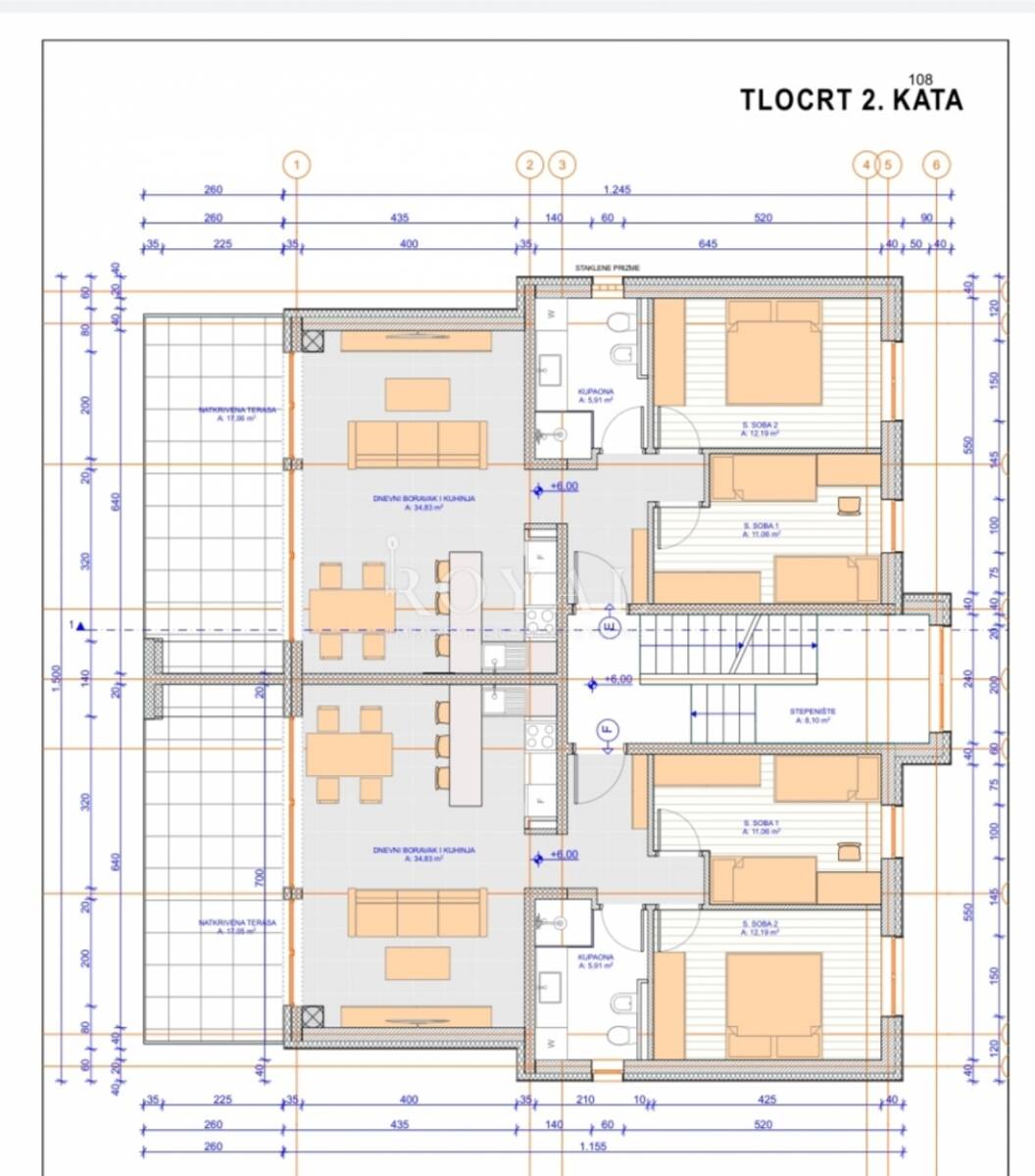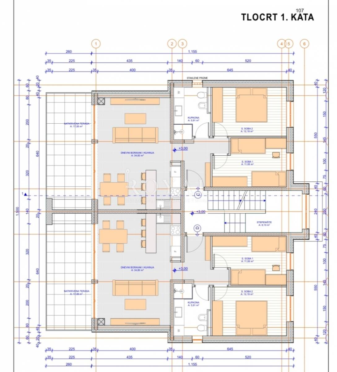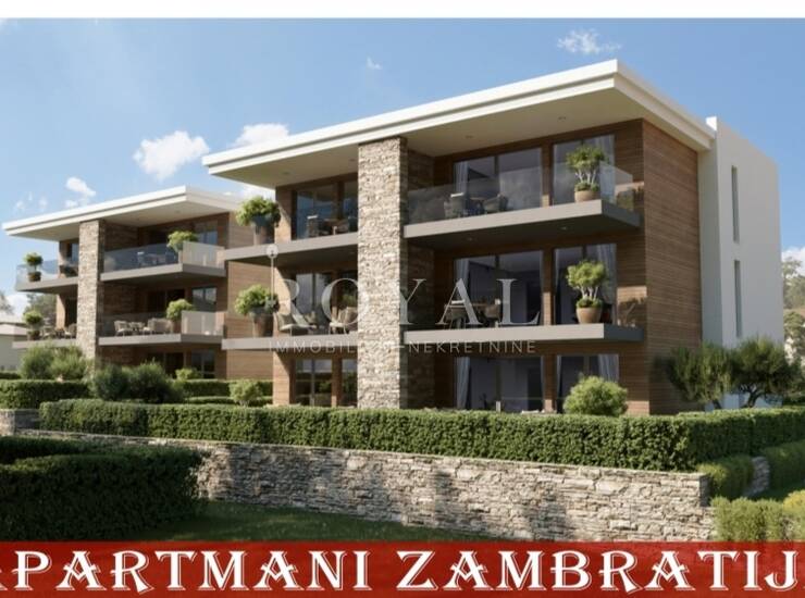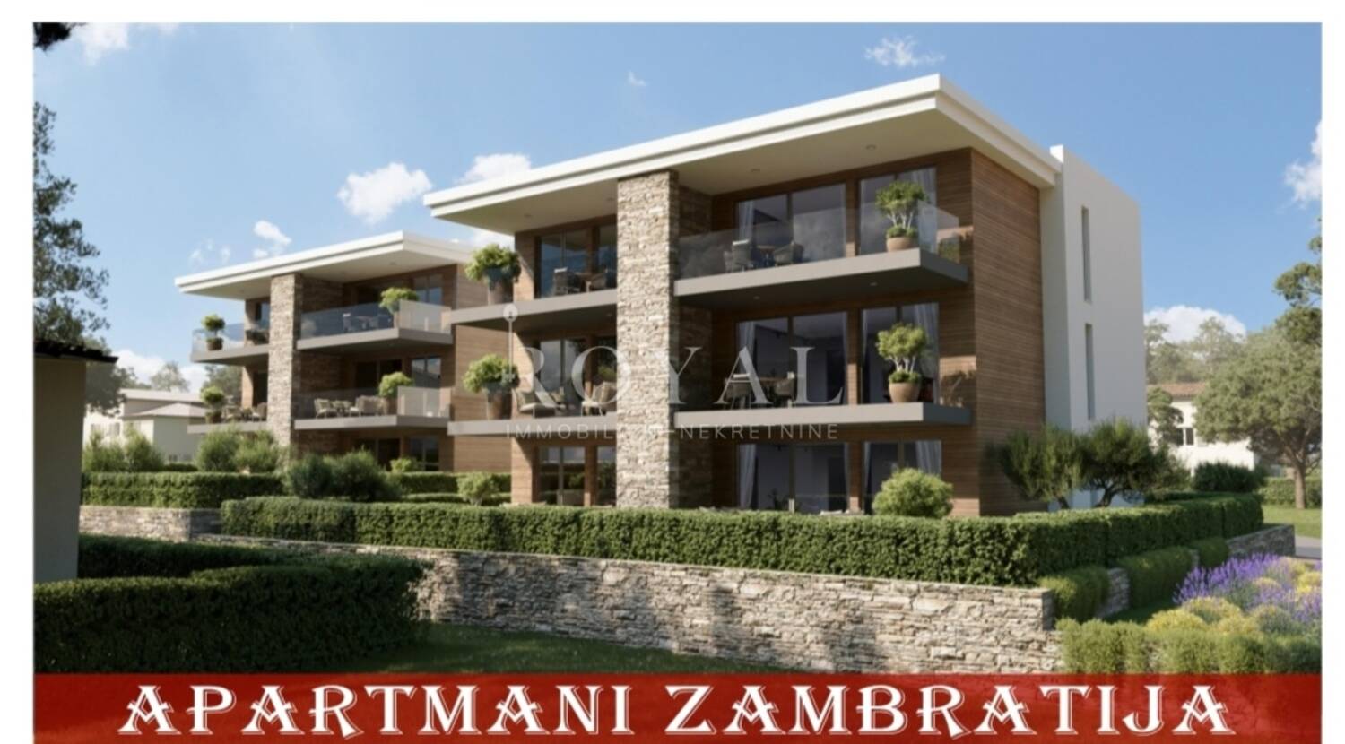 Savudrija - Zambratija, dvije zgrade sa šest stanova, stanovi su dvosobni s dnevnim boravkom i terasom, drvarnica, dva parkinga