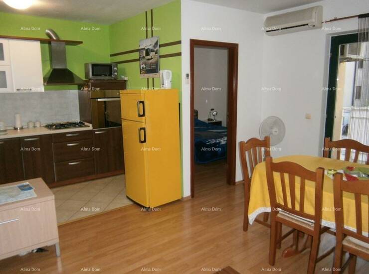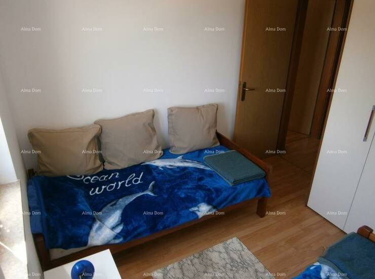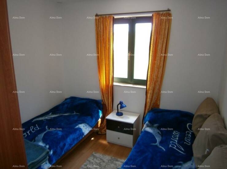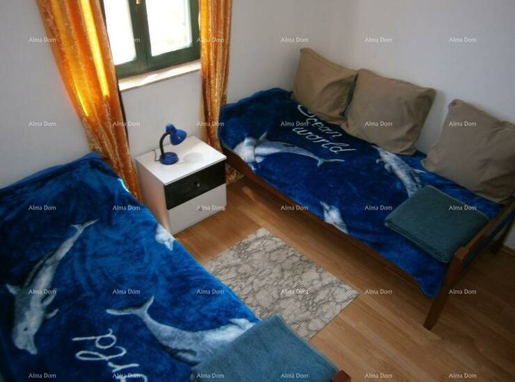 Nekretnina se sastoji od prostranog dnevnog prostora povezanog s kuhinjom te tri spavaće sobe, što je čini pogodnom za obiteljsko stanovanje ili odmor. Dodatnu vrijednost pružaju vanjski prostori – zapadno orijentirana terasa površine 7 m², opremljena roštiljem i blagovaonskim stolom za četiri osobe, kao i istočno orijentirana lođa od 5 m².