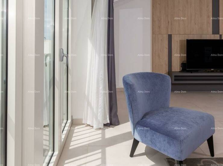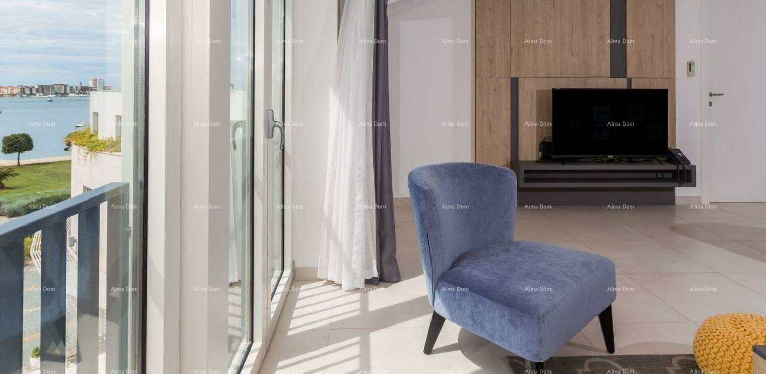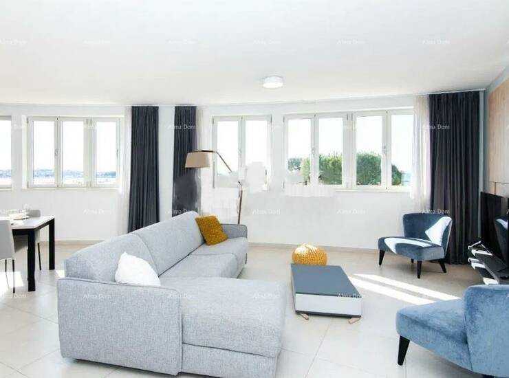 Apartman nudi prostran i funkcionalan raspored koji uključuje veliki dnevni boravak s kuhinjom i blagovaonicom, tri spavaće sobe, dvije kupaonice te utility prostoriju s dodatnim WC-om. Posebna vrijednost ovog penthousea je činjenica da se iz svake prostorije pruža jedinstven pogled na more i park koji se nalazi ispred zgrade, što stanu daje iznimnu svjetlost i osjećaj otvorenosti.